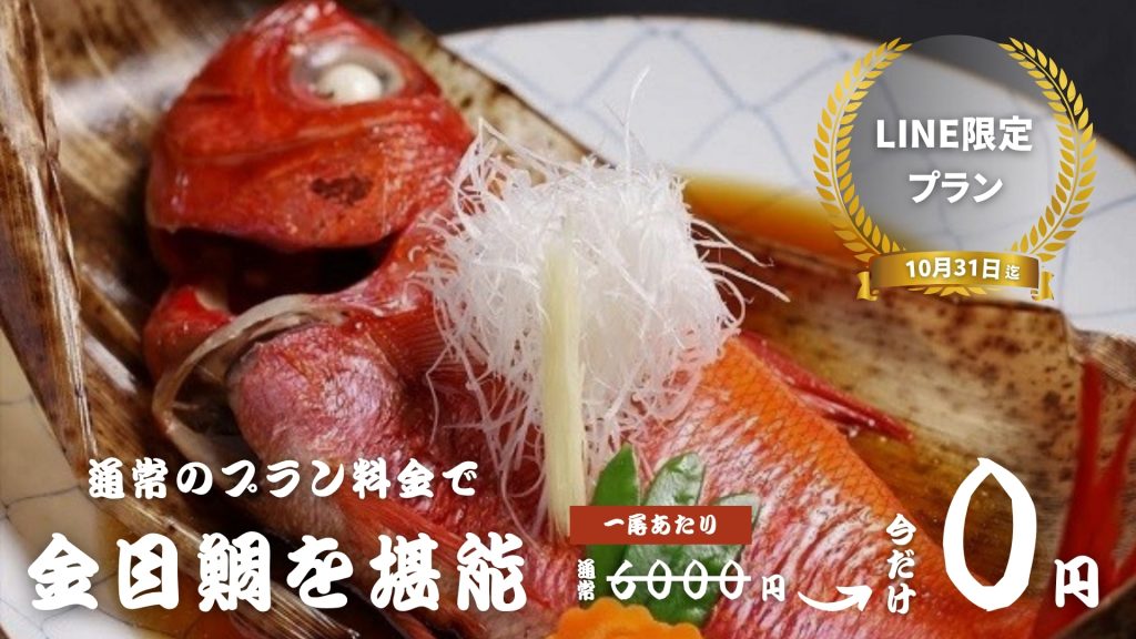 LINEメニューから「秋の味覚”金目鯛”付きプラン」がご予約できます🍁